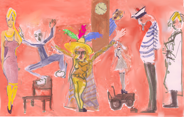 Scène théâtrale expressive inspirée de "Je veux voir Mioussov" – Dessin, Illustratiion d’Alain Jourdrain